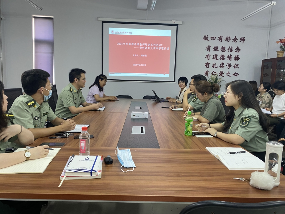 9月29日下午,政治理论课部副主任、名师工作室项目负责人谢赛银教授以“如何讲好大学生军事理论课”为题,开展专题辅导。政治理论课部学科带头人刘秀华教授、政治理论课部名师工作室全体成员、学院军事理论课讲授教师参加了本次培训。