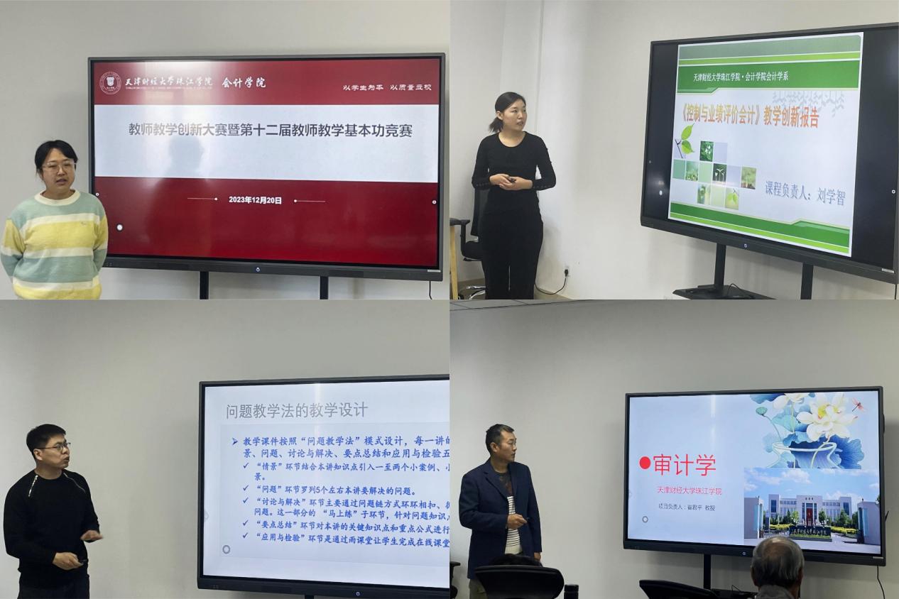 为提高教师的教学水平,激发教育创新活力,12月20日下午,教师教学发展中心联合徐立文名师工作室组织全体成员开展教学创新大练兵活动。经过初选,共推选12名教师上台比拼,邀请教学督导专家杨尊琦、赵秀云教授,会计学院院长韩传模作为评委专家进行指导。
