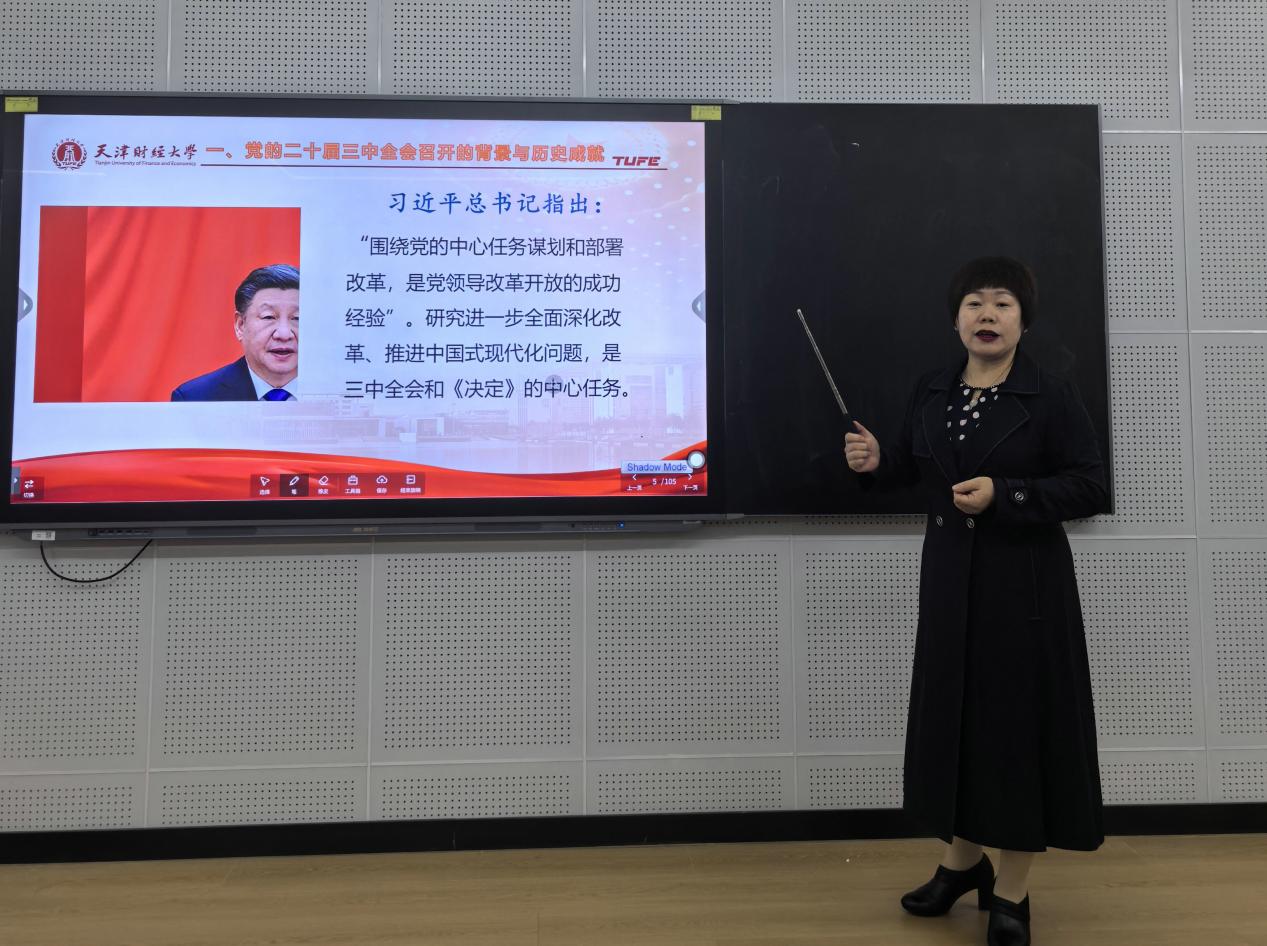 为深入学习贯彻党的二十届三中全会精神,10月9日下午,“以党的二十届三中全会精神为指引,奋力谱写中国式现代化新篇章”专题宣讲会在日新楼206成功举办。本次宣讲由天津市思想政治理论教授团成员、天津财经大学马克思主义学院院长杨书文教授主讲,政治理论课部全体教师及学生代表现场聆听。宣讲会由政治理论课部副部长谢赛银教授主持。