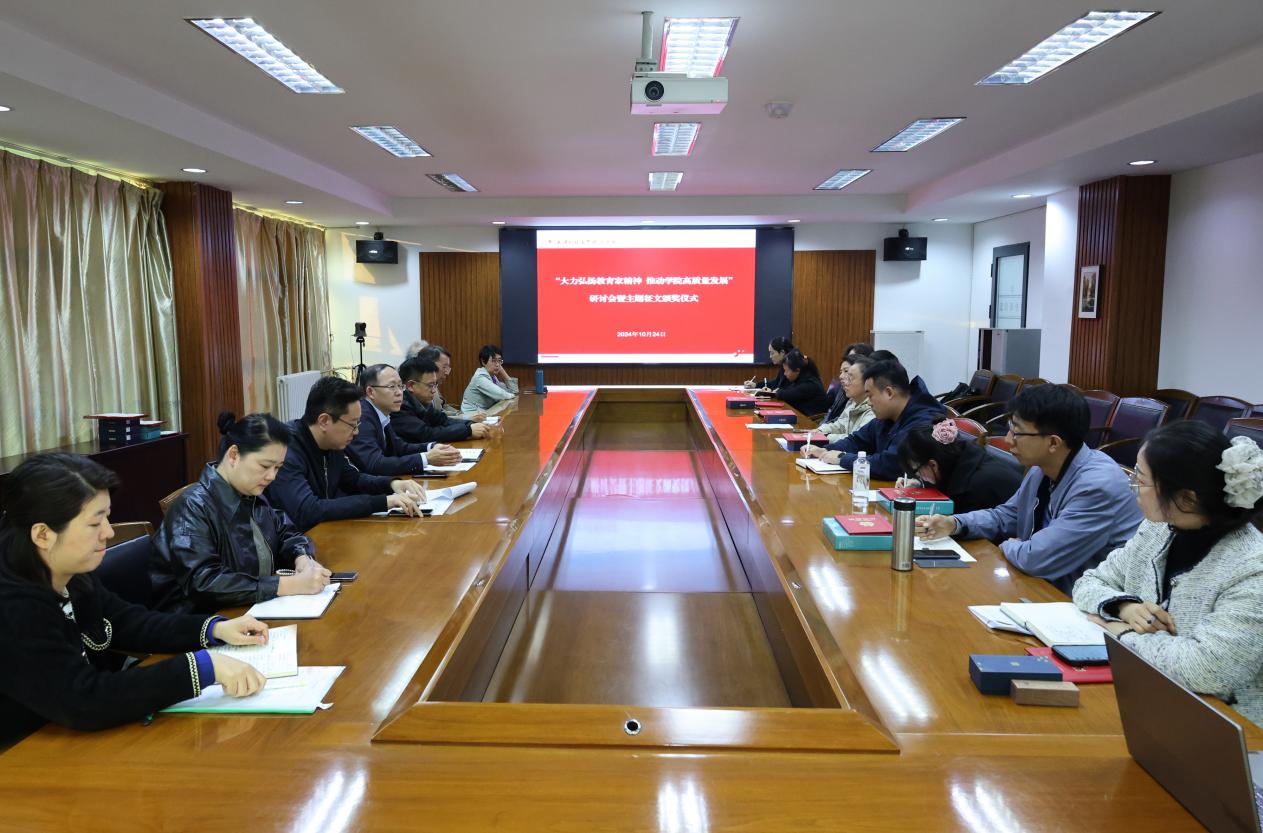 为贯彻落实习近平总书记关于大力弘扬教育家精神的重要指示,营造全院学习和弘扬教育家精神的良好氛围,10月24日下午,“大力弘扬教育家精神 推动学院高质量发展”研讨会暨主题征文颁奖仪式在弘毅328室举行。学院党委副书记、纪委书记白晓,督导专家杨尊琦,主题征文评委崔际银、徐伟,各教学单位和有关部门负责人,获奖人员参加活动。党委宣传部部长支玉成主持活动。