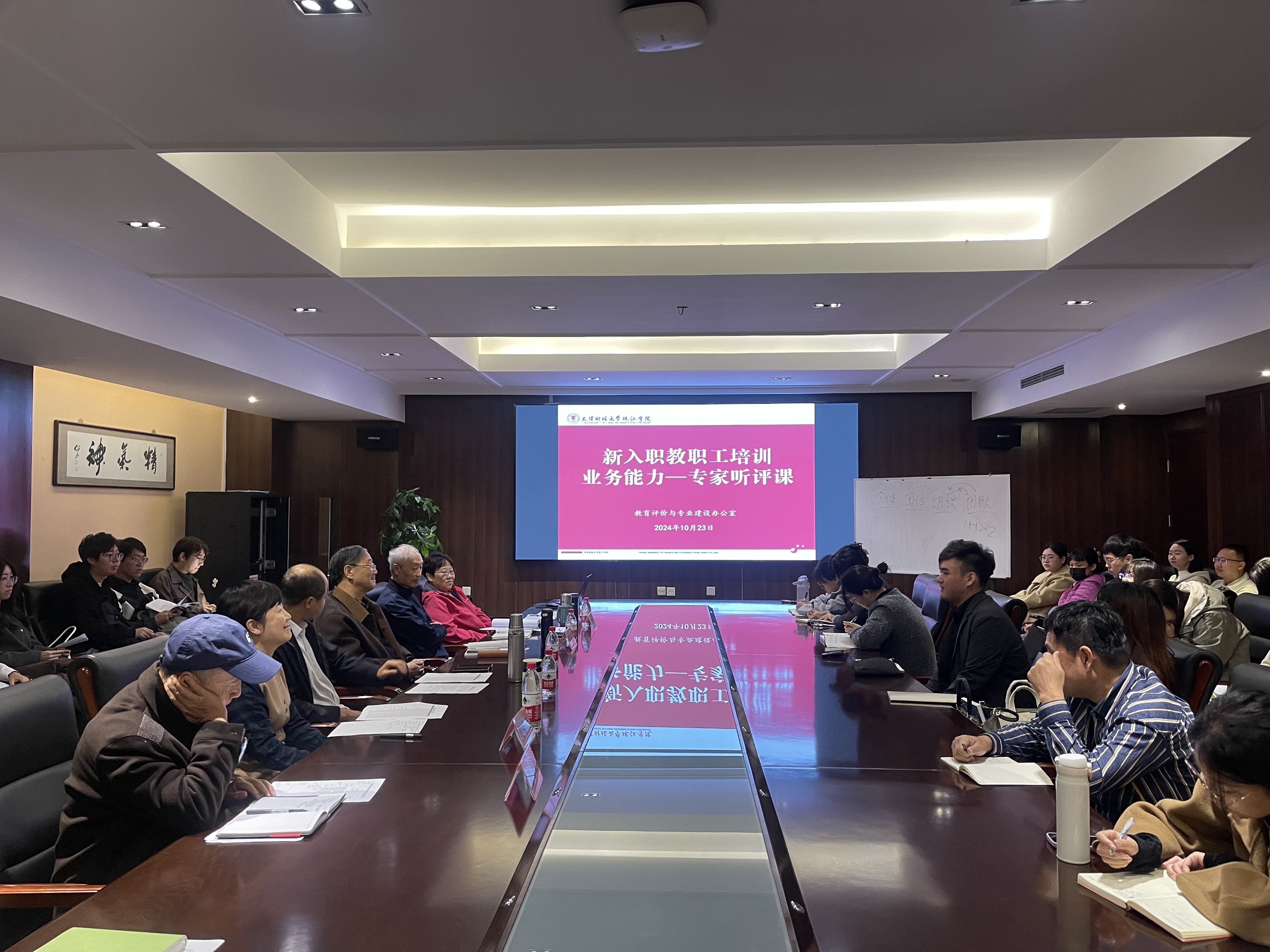 10月23日,根据学院统一安排,评建办组织校级督导专家在中和楼会议室对新入职教师开展专家听评课工作。校级督导专家姚莉、赵秀云、杨尊琦、李书全、韦琳、王湧,管理学院院长张英华、会计学院院长韩传模、艺术学院院长滑寒冰、政治理论课部部长刘秀华及全体新入职教师参加了会议。评建办主任王志宇主持会议。