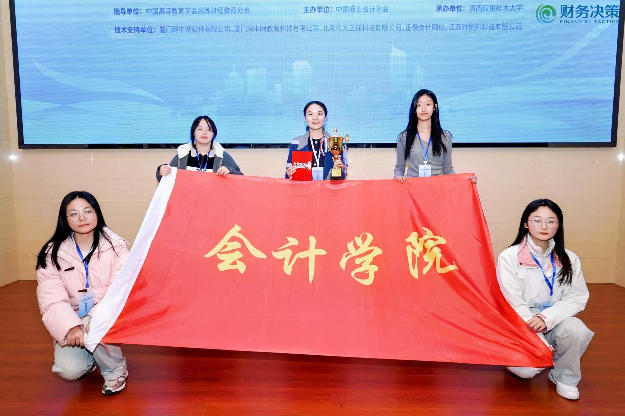 此次大赛紧扣新文科建设要求,紧跟行业发展趋势与市场需求,赛事自10月启动,吸引了来自东北财经大学、南京审计大学、安徽财经大学等全国567支队伍参赛。经过初赛与省赛层层选拔,学院代表队在汪蕾老师与樊嘉钰老师的指导下,成功晋级全国总决赛,队伍成员包括审计学专业的张文雪、孙润夕,以及财务管理专业的张甜甜、向灿。全国总决赛设有财务决策与大数据税务风险预警分析两个环节,决赛中,队员们充分发挥各自的专业特长,最终以全国第四名的优异成绩荣获一等奖。