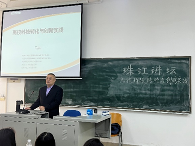 1.国内高校科技研发与转化基本情况简介。马教授对目前国内高校科技研发与转化概况,知识产权、专利申请情况进行了介绍,并针对高校学生在当前经济环境下如何融入市场创新环境,寻找创业线索、建立创业系统、打造创业团队等问题给出了自己的意见和建议。