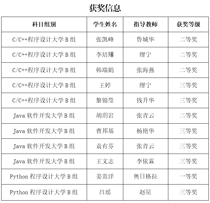 近日,珠江学子在第十六届蓝桥杯全国软件和信息技术专业人才大赛天津市赛中喜获佳绩。获一等奖1项、二等奖4项、三等奖6项,1名选手成功晋级全国总决赛。