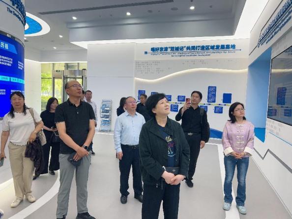 李倩总经理助理、张立健部长陪同任碧云院长一行参观了京津中关村科技城展示中心,介绍了京津中关村科技城的发展历程、发展规划、运营模式、平台功能及“产学研用”一体化生态体系,展示了京津中关村科技城在人工智能、生物医药、高端装备制造等领域的产业化应用和创新成果。