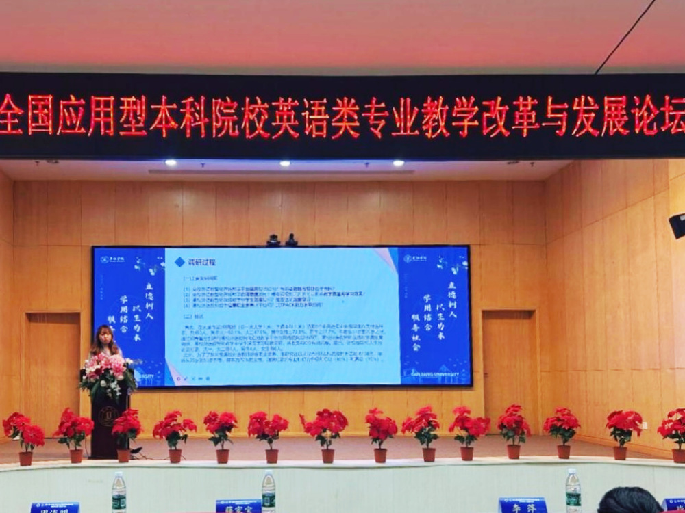 近日,第八届全国应用型本科院校英语类专业教学改革与发展研讨会在南京召开,我院人文学院教师姜瑞红受邀参加,并在主会场上宣读了基于学院市级教改最新成果的研究论文。