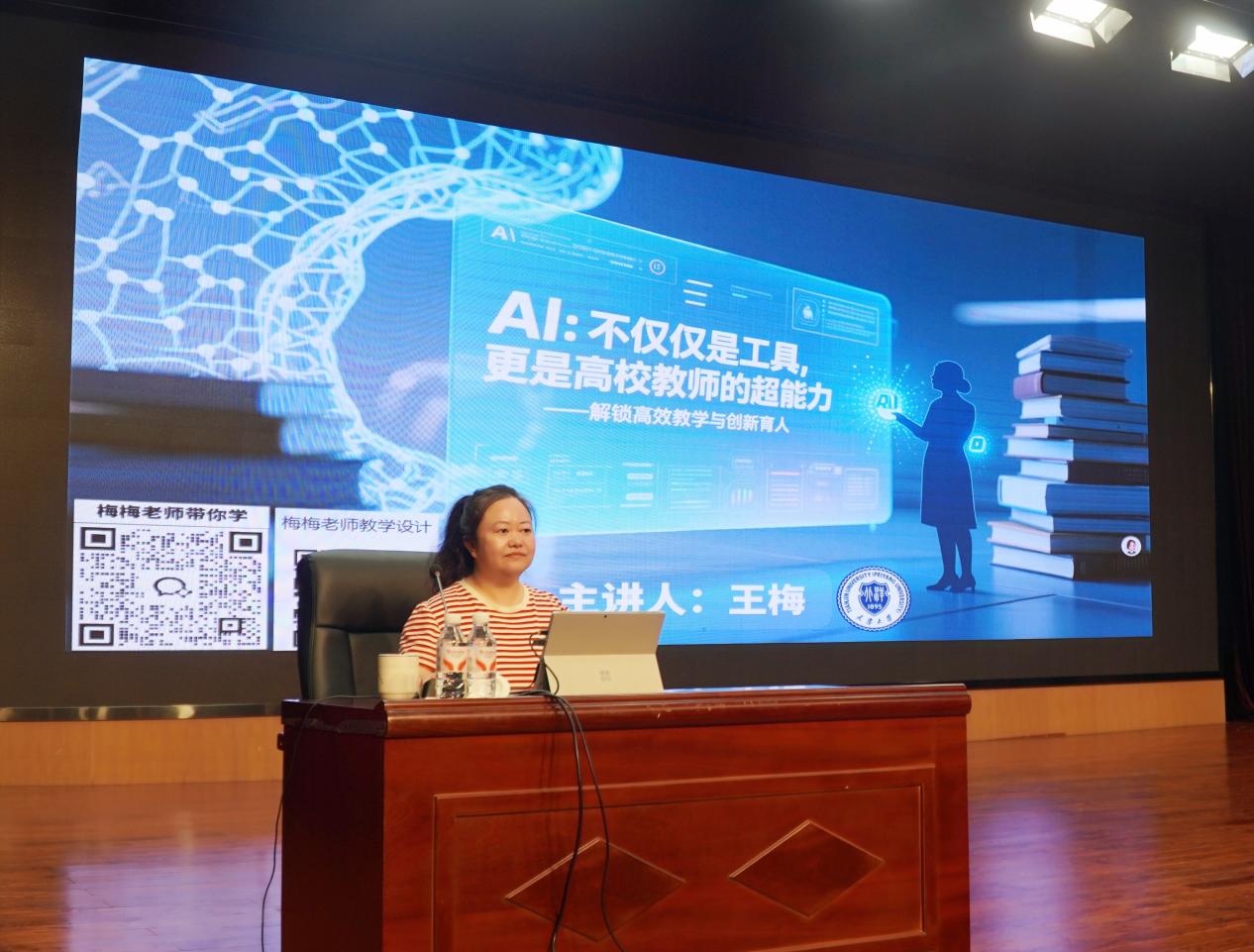 围绕AI的实用本质,王梅教授指出,AI并非遥不可及的“魔法”,而是一个强大的“工具箱”,包含机器学习、深度学习、自然语言处理等多种实用工具。她强调,AI不会取代教师,但掌握AI的教师将更具竞争力,要把握AI赋能的时代机遇,利用AI大模型快速处理复杂任务,让教学工作更加高效、创新。