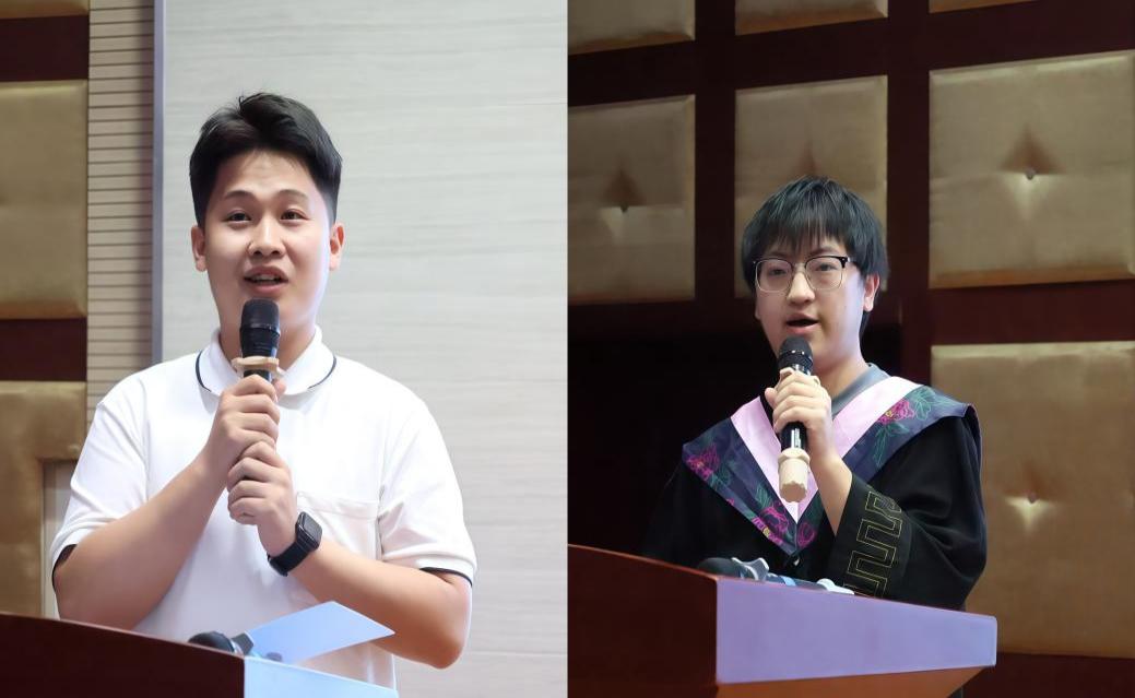 毕业生代表经济学院潘柏良、会计学院白天阳分享了各自的求职历程与职场体悟,引发在场学子的深度共鸣与热烈反响。