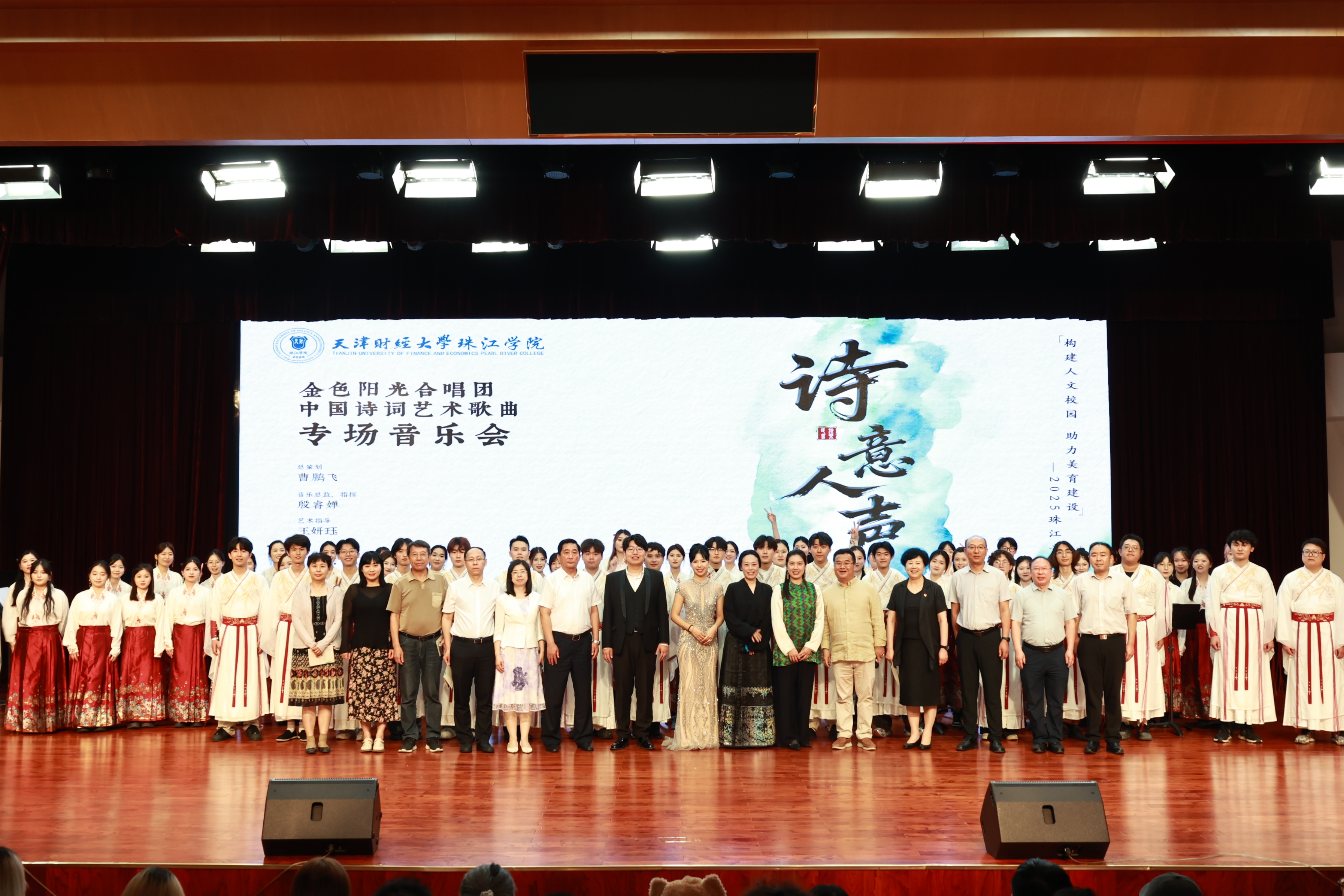 6月18日下午,“构建人文校园,助力美育建设”2025珠江音乐季之“诗意人声——金色阳光合唱团中国诗词艺术歌曲专场音乐会”在学院中和楼礼堂成功举办。学院领导任碧云、梁海龙、李晓鹏、李金山、陈明明、白晓、郭鑫出席活动,学院相关部门、单位党政负责人和千余名师生共同参加,见证了一场诗歌与音乐相互交融的艺术盛宴。