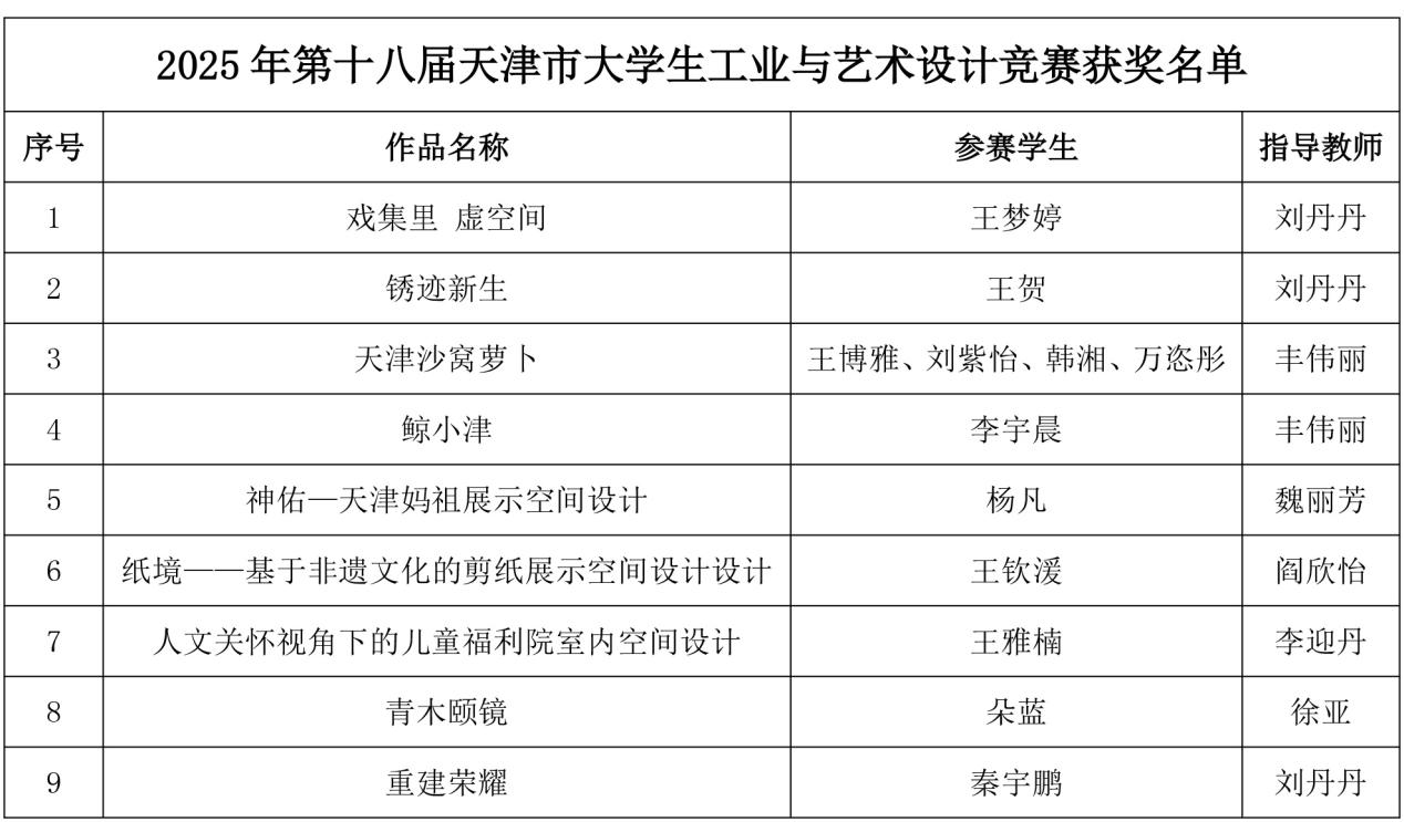 近日,由天津市教委主办、天津商业大学承办、天津轻工职业技术学院协办的“第十八届天津市大学生工业与艺术设计竞赛”获奖名单正式公布。艺术学院学生表现出色,共荣获9个奖项,其中包括二等奖2项、三等奖7项。