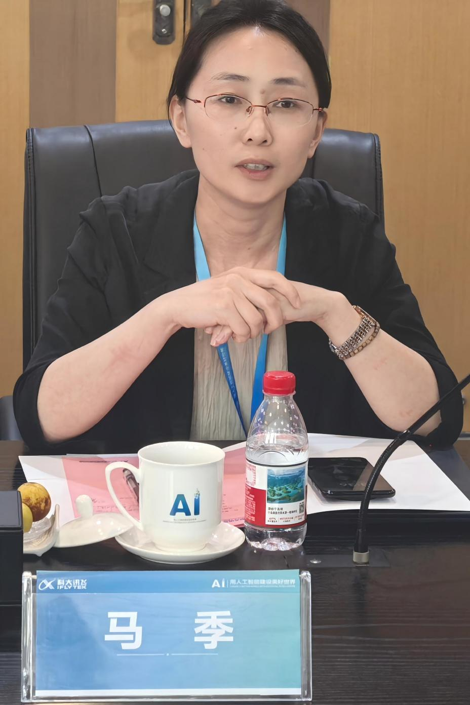 马季在交流中进一步介绍了科大讯飞在人工智能、大数据与教育融合方面的实践经验和创新成果。她表示希望通过此次合作,共同打造人才培养新模式,为学生提供更多实训机会和创新空间。