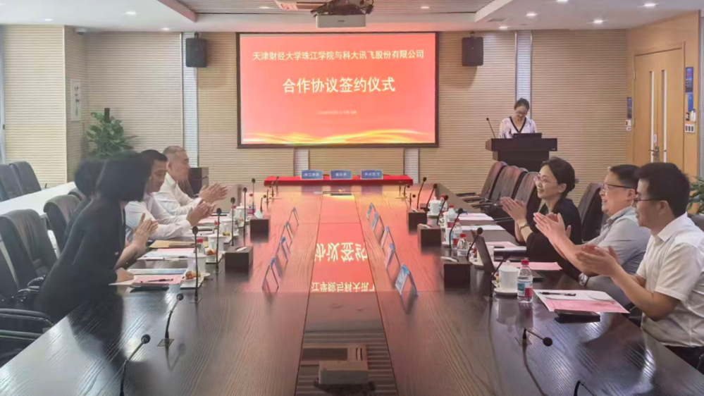 在院长任碧云、副院长陈明明,科大讯飞教育事业群副总裁马季、天津产业加速中心总经理李姝等与会人员的见证下,副院长李晓鹏与科大讯飞产教融合业务副总经理张承云代表双方签署合作协议。签约的顺利完成,标志着双方合作正式进入实质性阶段。