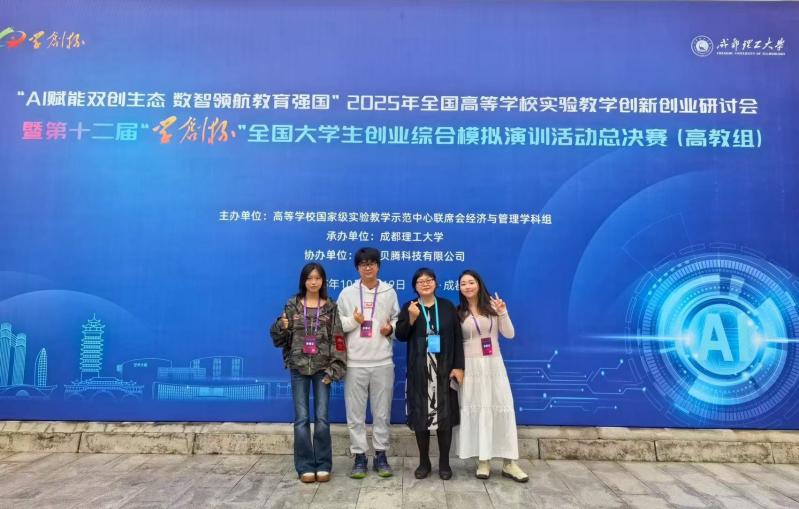 本届全国总决赛以“AI赋能双创生态,数智领航教育强国”为主题,由成都理工大学承办。大赛启动以来参赛院校达到1500多所,队伍数量超过10万支,进入到全国总决赛的高教组参赛院校221所,队伍287支,师生数量1000余人。数字营销模拟赛项采用《营销之道》专业竞赛平台,全程模拟真实营销实战,要求参赛队伍在四轮虚拟季度运营中,完成市场分析、产品策略、定价决策、渠道拓展、促销规划等全流程操作,对选手的数据分析能力、战略思维与应变能力提出了极高要求,管理学院对本届“学创杯”赛事给予高度重视,将其作为深化“新财经”建设、检验实践育人成果的重要契机。自年初赛事启动以来,管理学院成立备赛组,指导教师结合数字营销赛项特点,为学生制定了系统性、高强度的备赛方案,从市场模型搭建、数据算法分析到实战策略优化,进行全程跟踪指导;从校赛选拔、市赛晋级到国赛冲刺,各环节无缝衔接,形成了师生协同的备赛格局,为队伍最终突围奠定了坚实基础。