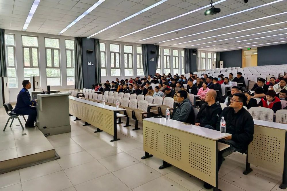 值此第34个全国消防日来临之际,为响应“全民消防、生命至上——安全用火用电”主题,进一步加强消防安全工作,培养消防安全“明白人”,10月16日,学院安全部联合后勤基建部邀请京津新城消防救援站李晨阳站长,为食堂员工举办消防安全知识讲座。