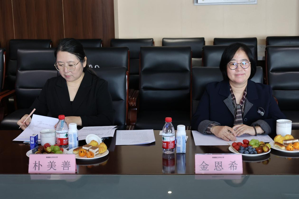 上午10点10分,各二级学院负责人与代表团会面,双方就今后在教学、科研、学生交流等方面进行了深入交流。金恩希副校长介绍了济州大学的专业设置及优势学科,我院各二级学院负责人先后介绍了专业建设情况。会谈中,双方就国际贸易、旅游与酒店管理、艺术领域各专业的交流与合作提出构想,并就学生短期交流达成初步意向。