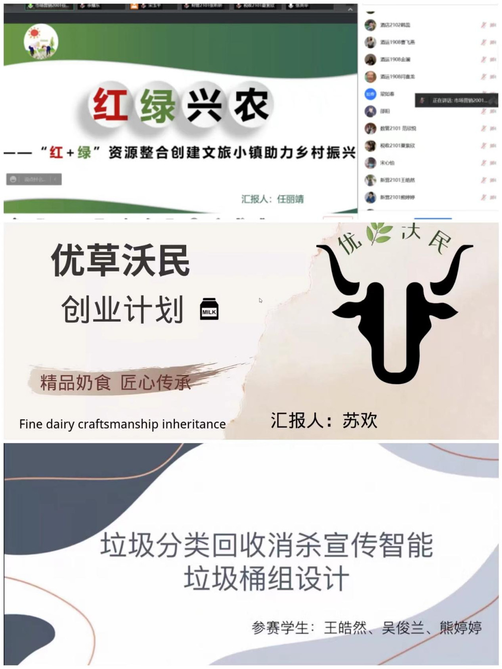 经过三个多小时的激烈竞赛,15支决赛队伍顺利完成了创业项目的路演和答辩。评委专家根据初赛项目计划书完成情况以及决赛路演和答辩情况,从创业项目的产品(或服务)创新性、专业融合程度、绿色创业特色等方面进行了客观、公正的综合评定。最终,综合三位评委专家的评分后,评选出本届竞赛一等奖3项、二等奖5项、三等奖7项。其中,“红绿兴农”、“优草沃民 ”、“垃圾分类回收”3个创业项目荣获竞赛一等奖。