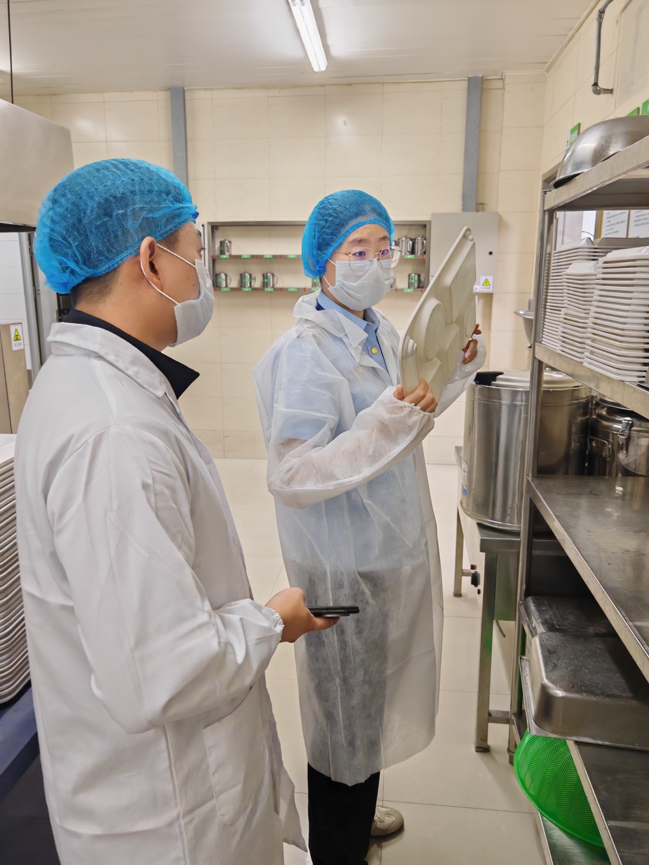 9月24日,学院主动邀请属地市场监督管理局专业监管人员来校开展突击式执法检查。通过查阅资料、实地查验、现场快检等方式,对食堂食品经营许可证、从业人员健康证明、食品留样制度执行情况、后厨环境卫生等重点内容进行专业评估,并现场组织各食堂负责人互评互检。此次外部监管有效检验了我校食品安全工作的合规性与透明度,进一步提升了食堂运营的规范化水平