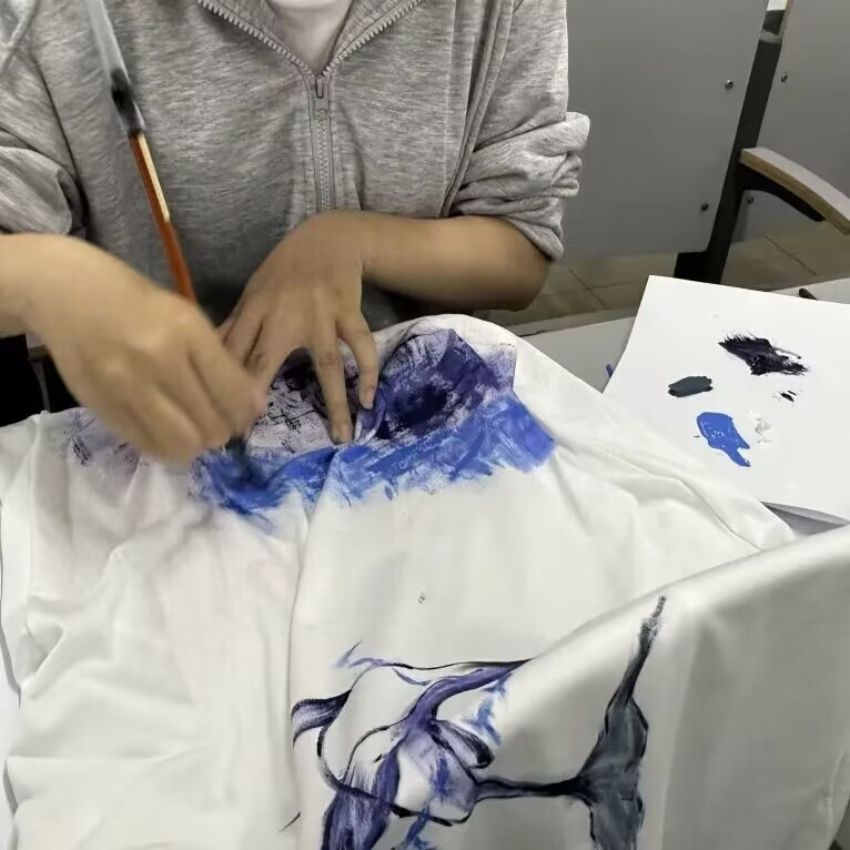比赛开始,选手们在五十分钟内尽情发挥自己的想象力,设计出独特的文创作品。他们凭借一支画笔和一双巧手,让原本普通白净的衬衫色彩纷呈,更显设计感。创作完成后,选手们依次上台展示各自设计的绘画作品,并介绍设计理念及初心。整场比赛赏心悦目,精彩不断,选手们的创造力被不断挖掘,本次比赛也成功落下帷幕。