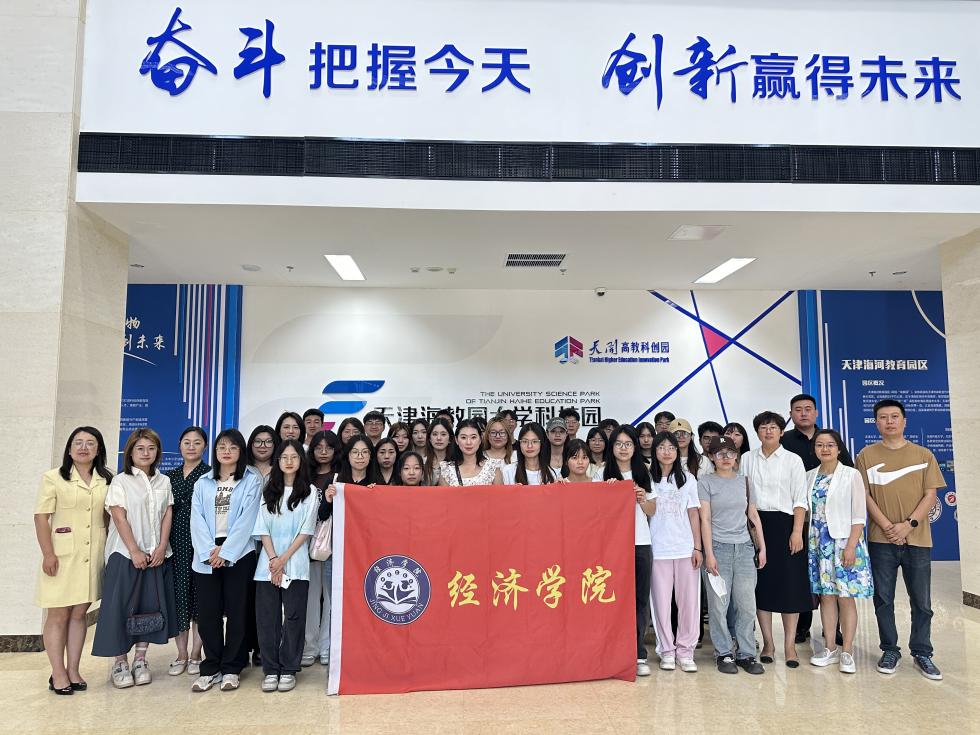 5月28日,经济学院党总支书记熊泽宇、副院长王伟、部分国贸系专业课教师、就业辅导员张晓菲、教学秘书汤磊及国贸系2021级学生代表一行47人走进天津海教园大学科技园参观学习。