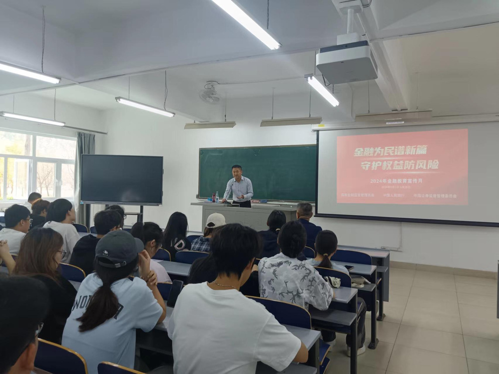 9月25日下午,经济学院邀请到山金期货有限公司投资咨询部的资深投资经理曹有明先生,在日新楼101室举行了一场题为“金融为民谱新篇 守护权益防风险”的专题讲座。本次讲座由经济学院孟颖副院长主持,吸引了100余名经济学院师生的热情参与。