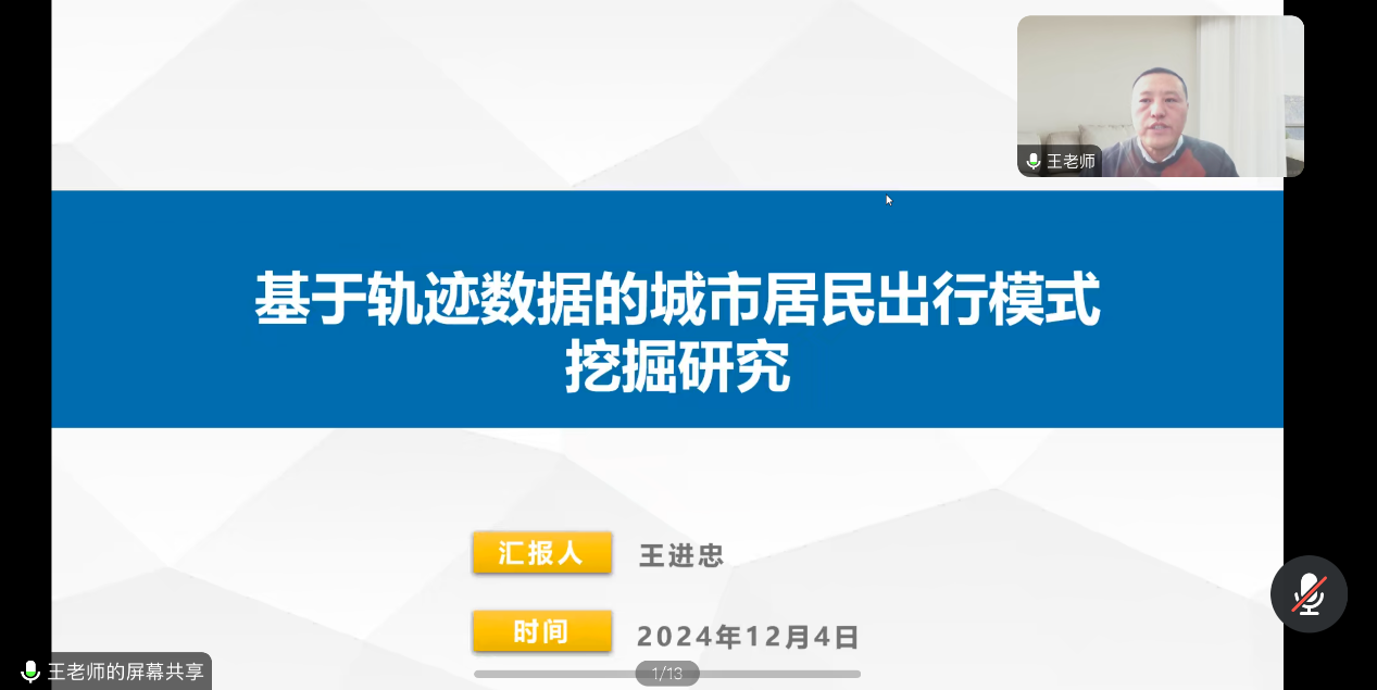 1.基于多源交通轨迹数据的居民出行模式分析。首先,王教授对多源异构数据下如何深入分析出行模式进行了探讨。随着城市化进程加快,城市结构布局动态演变,居民出行模式也发生了改变,现有方法存在数据集单一性、评价标准不统一、忽略居民出行内在特征等问题。随后,王教授以上海 SODA 获取的出行轨迹数据集为例阐述了如何分析居民出行模式。先进行数据清洗,构建居民出行网络(HMN),定义行程位移、用时、速度、间隔等指标;然后通过计算这些指标的四个出行特征,分析累积概率分布,利用 BIC 确定最优拟合分布,MLE 获取分布参数,进而分析居民出行模式。