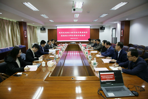 2020年12月17日,珠江教育医疗集团高级顾问罗伟其、365英国上市集团官网董事长郑晨光、珠江教育医疗集团教育发展管理中心副总经理杜展鹏和经理梁晓颖、珠江教育医疗集团审计监察中心总经理杨伟新和经理李康惠一行六人莅临学院考核评估。院领导班子成员参会并汇报2019-2020学年学院各项重点工作开展情况。