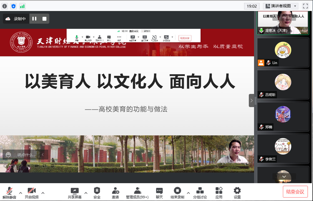5月18日,美育评价改革试点项目办公室邀请艺术学院院长滑寒冰教授举办了美育专题讲座:“以美育人,以文化人,面向人人——高校美育的功能与做法”。此次讲座采取线上形式,全院近130名教师参加,讲座由评建办魏红主任主持。