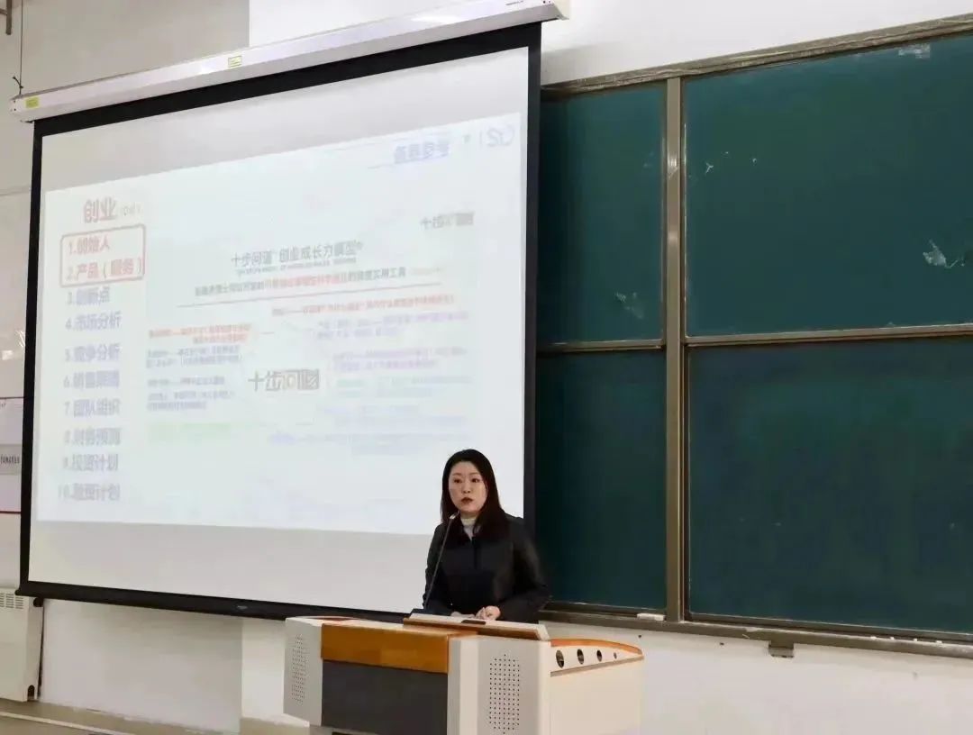 接下来由人文学院学工办主任汪晓薇老师发表讲话,她对邵阳老师的演讲给予了极高的评价,并介绍了邵阳老师的身份、参加的比赛及成就。从教师的角度说明了此次大赛的重要性,提出创新创业大赛的准备应注重可行性,切实提高创新精神、创业意识和创新创业能力,高要求、高标准地推进备赛工作,努力在大赛中取得更好成绩,鼓励同学们多参加比赛,激发自己的潜能。