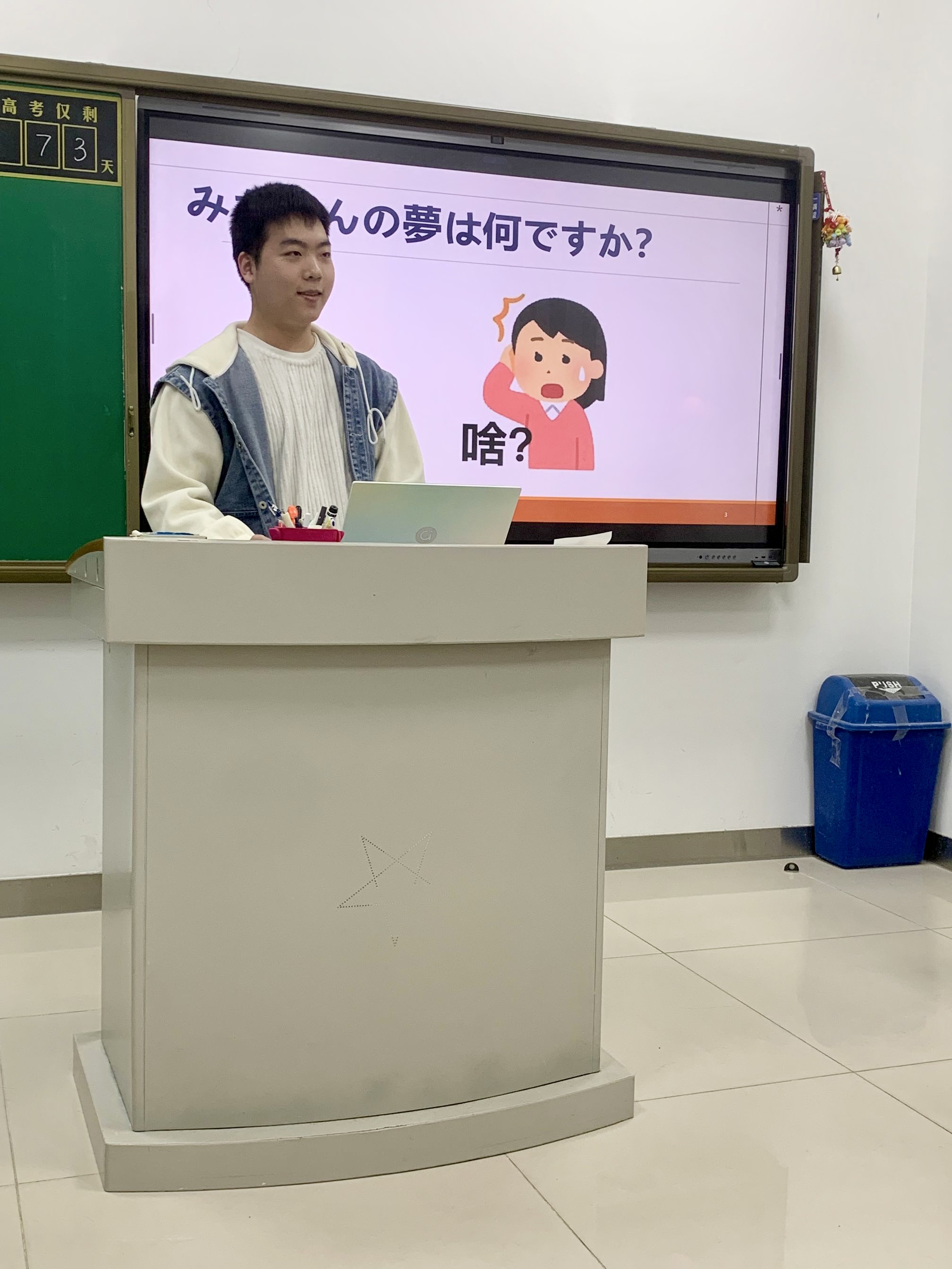 胡子豪同学表示,活动前自己一直很紧张,担心无法流畅表达,害怕与高中生们沟通时出现障碍。然而,在与学弟学妹们面对面交流的过程中,他逐渐放松下来,发现语言不仅是沟通的工具,更是连接人与人之间情感的桥梁。这次实践活动不仅让他对教学有了更深刻的理解,也提升了自己的日语表达能力与社交自信,是一次宝贵的成长体验。