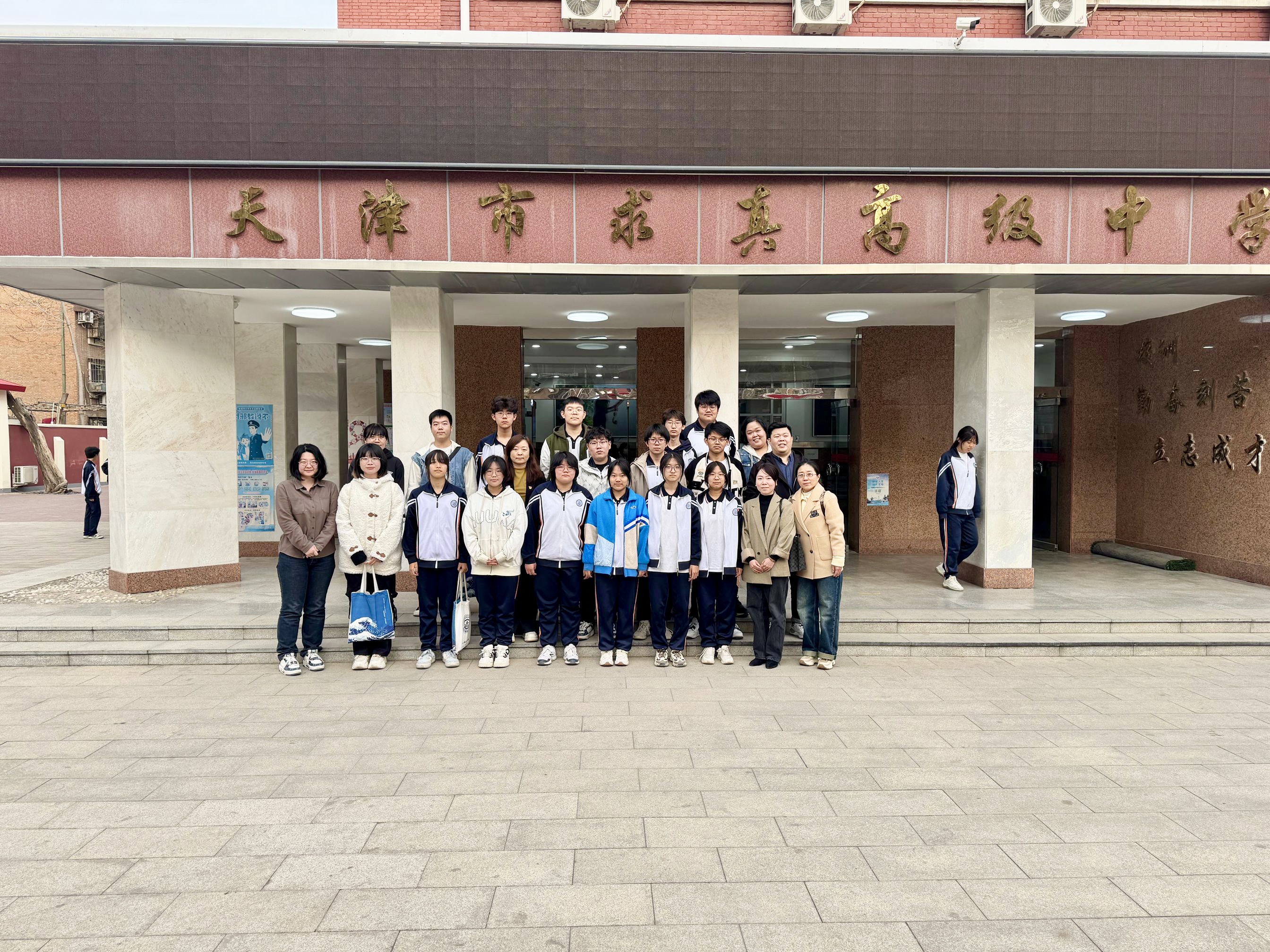 3月26日,在春暖花开、万物复苏的春分时节,人文学院日语教研室李俊兰、李娟老师带领日语专业学生再赴天津市求真高级中学,开展了一场别开生面的实践教学活动。本次活动旨在通过沉浸式交流,帮助高中生们近距离感受大学生活与日语学习的魅力,同时锻炼日语专业学生的跨文化沟通能力,提升教学实践经验。