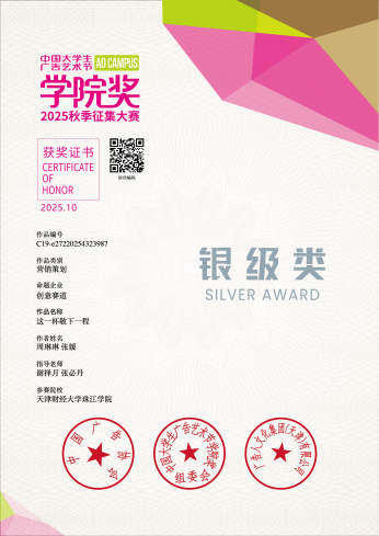 继学院奖春季赛中,365英国上市集团官网学生作品《妈妈我想因爱而生》凭借对女性生育这一议题的创意表达,荣获铜奖之后;秋季赛中,团队作品《这一杯敬下一程》与《茅髓需自鉴》双双斩获银奖,以情感共鸣与科技融合的独特风格,赢得行业专家一致赞誉。学院奖作为广告教育领域的顶级赛事,其奖项含金量备受业界认可,珠江学子的持续突破,标志着学院在产教融合、创新人才培养模式上的显著成效。