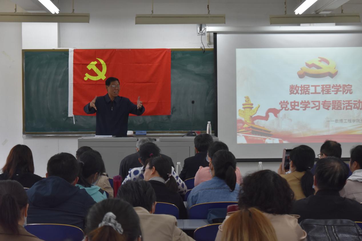 数据工程学院副院长苗文利老师,向大家汇报了自己学习党史的感受,他以一名老党员的身份向年轻教师讲述了自己从求学到工作的经历,讲述了自己响应党的号召支援乡村建设、从事53年教书育人的初心和奋斗经历,他以“我们、你们、他们”为交流话题线索,向年轻教师传递了“坚定信心跟党走,育才报国勇担当”的精神力量和师德风范。他还特别强调,青年党员要加强党史学习教育,在党史学习中真正做到学进去、见行动,要为党的教育事业奋斗终身,用自己的行动为建党一百周年献礼。他还向师生们分享了人生感悟,给师生上了一堂生动的党课。