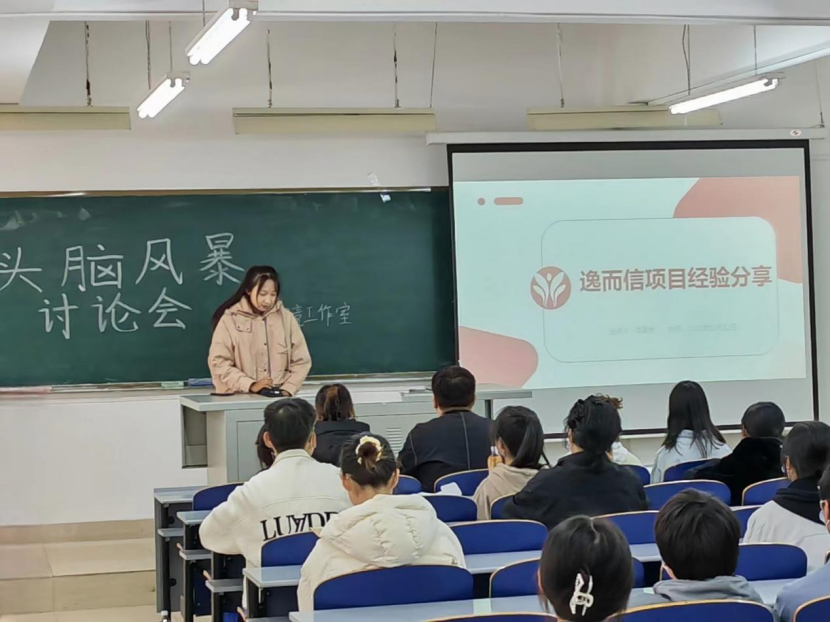 活动伊始,本次头脑风暴会由计科2202班严瑾主持,八十多位同学参加。主持人介绍了“互联网+”大赛的宗旨,头脑风暴会举行的目的。本次头脑风暴会邀请到了第八届“互联网+”市级银奖项目 《逸而信》项目负责人李瀛秀、《云起东巴》项目负责人李尧晋为大家作经验分享。两位项目负责人向到场的同学们说明了项目构思,团队协作的重要性,以及项目落实等多个方面的参赛细节,为大家今后的参赛提供了经验。之后,参与本次头脑风暴会的各个小组对本组的项目从开展,实施,再到项目的风险进行了详细介绍,七位评委对每个小组的项目进行了点评,为每个项目的瓶颈指明了突破方向,使各小组的项目得到进一步的提高。