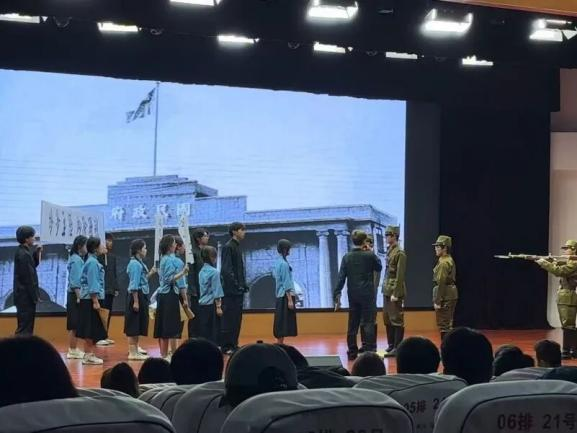 数据工程学院的剧目《破晓》以1919年巴黎和会中国外交失败、山东权益被转让给日本为背景,展现了民族危亡之际爆发的五四运动。该剧生动诠释了“爱国、进步、民主、科学”的五四精神,刻画了青年学生在国家命运转折点上展现的使命与担当,传递了“不忘来路、传承薪火”的信念。