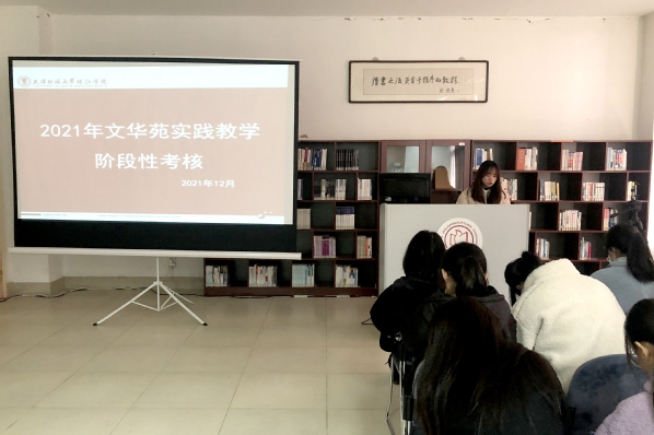 12月15日中午,图书馆二课考评小组在文华苑开展2021年度文华苑实践教学阶段性考核,书源工作室及文缘读书会16名同学参加了此次考核。