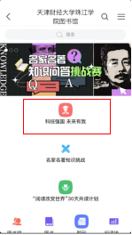 2、读者使用手机号注册,首页右上角点击输入邀请码“cdzj”进入图书馆首页,点击“科技强国未来有我”参与活动。
