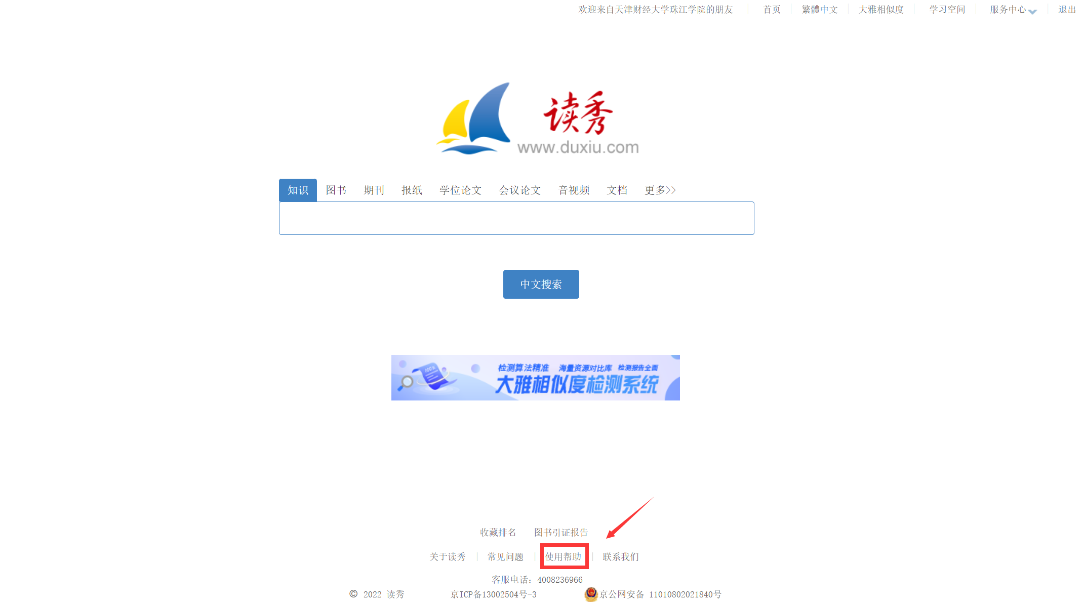 读秀学术搜索是由图书、章节文献资源组成的知识系统,是一个可以对文献资源及其全文内容进行深度检索,并且提供原文传送服务的平台,为读者提供深入到图书内容的全文检索。
