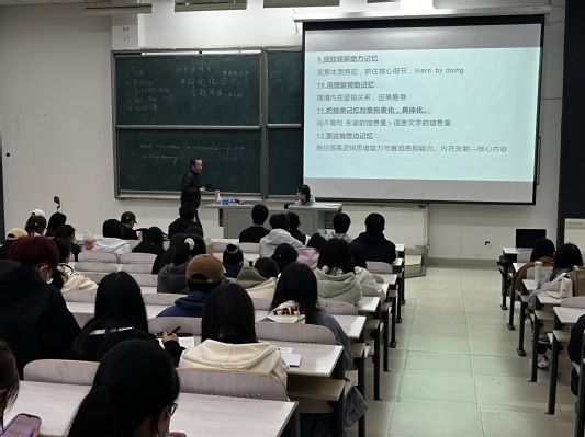 4月26日晚七点,图书馆读书宣传月主题讲座系列之:大学英语记忆优化讲座在学院日新楼210举办。