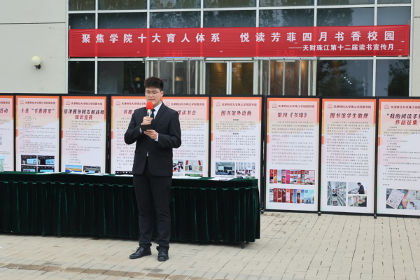 在第二十九个世界读书日来临之际,图书馆开启“聚焦学院十大育人体系,悦读芳菲四月书香校园”为主题的第十二届读书宣传月活动。4月23日,图书馆在南广场举办读书宣传月启动仪式,200余名学生代表参加此次活动。