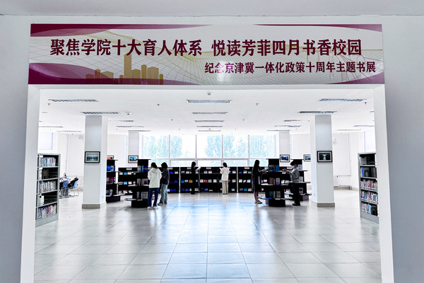 为纪念京津冀协同发展战略实施十周年,图书馆在读书宣传月期间举办了相关主题书展。书展采取线上线下相结合的方式,在图书馆主馆二楼和微信公众号上为广大读者提供了全方位、多角度的图书资源。