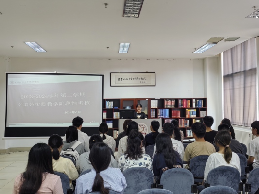 6月中旬,图书馆在文华苑举行了四场2023-2024学年图书馆第二课堂实践教学年度总结与考核会。书源工作室、文缘读书会、乐多英语社及韩国文化研习社共78名同学参加并通过考核,考核评委团队由图书馆的指导教师组成。