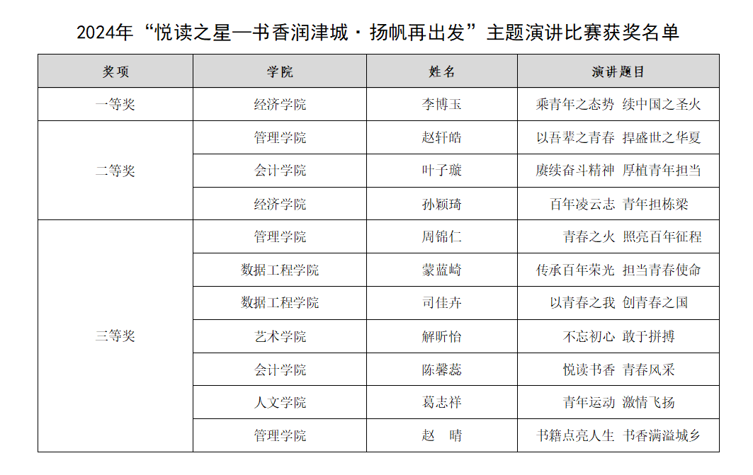 此次演讲比赛的圆满举办,不仅丰富校园文化生活,也为同学们提供展示自我的舞台,进一步激发广大青年学生以书润心,与智同行,为民族崛起担起重任,扬帆再出发!