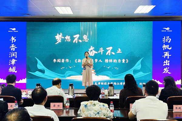 本次“悦读之星”高校图书馆馆员评选活动以“书香润津城·扬帆再出发”为主题,由天津市委宣传部、教育工委、高校图工委等相关部门联合举办。活动初赛以选手选取参阅著作录制演讲视频,专家组评审进入决赛;决赛进行5分钟现场演讲并由专家评委综合打分。图书馆刘宁老师经过精心准备、反复练习,在一众参赛者中脱颖而出,以《新时代追梦人:榜样的力量》为推荐图书,以《梦想不息、奋斗不止》为演讲题目代表学院图书馆参加评选决赛演讲,最终获得三等奖。