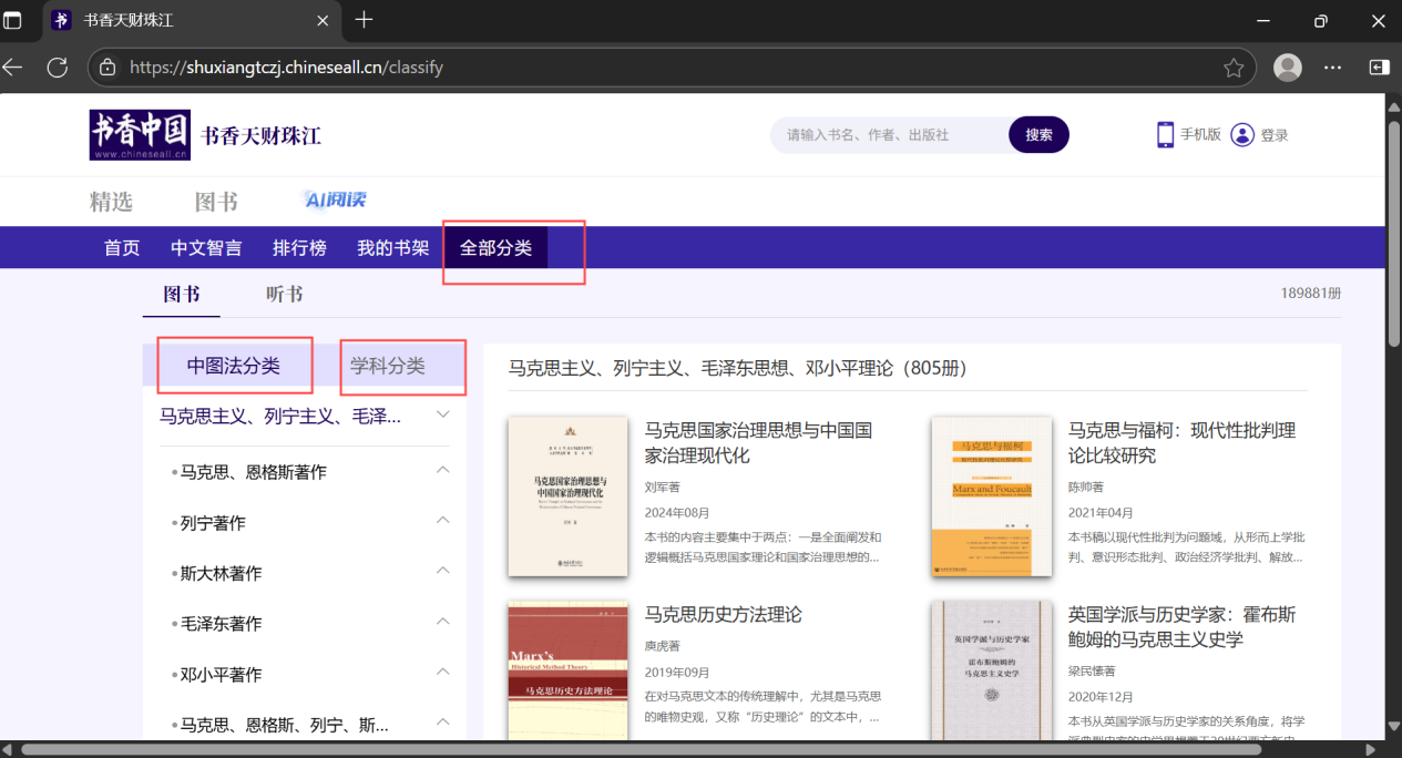方式2:如图3-2,点击全部分类后,可根据中图法分类或学科分类进行查阅。