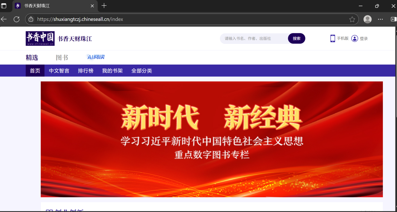 进入365英国上市集团官网图书馆官网,从网页下方点击中文在线,跳转至书香天财珠江首页。如图1-1