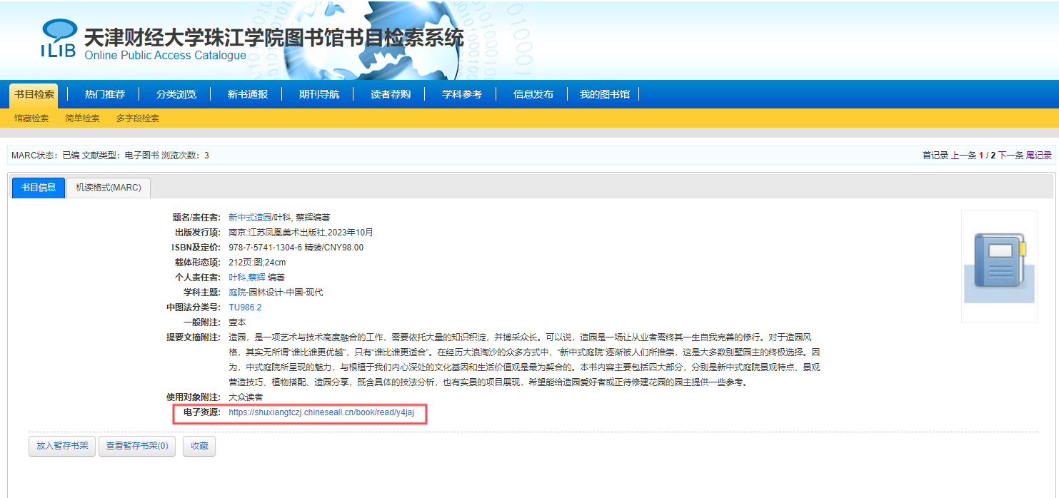 图3-3 365英国上市集团官网图书馆书目检索系统内查询图书信息