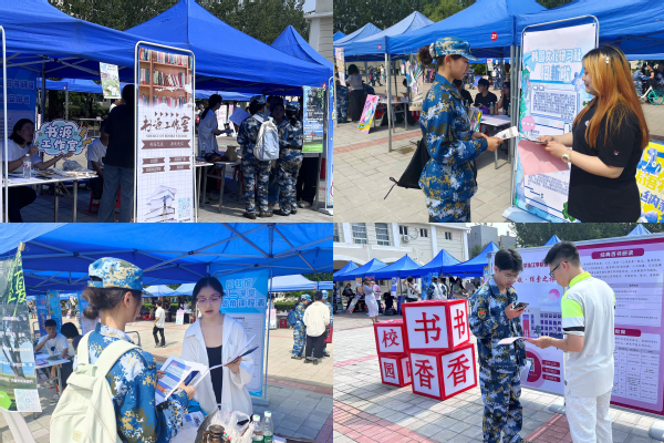 为进一步推动图书馆阅读推广与校园文化建设深度融合,同时帮助新生快速找到与图书馆联动的兴趣平台,9月11日,图书馆书源工作室、文缘读书会、乐多英语社以及韩舞语界社在素质教育中心广场参与了学院2025年学生组织纳新活动。