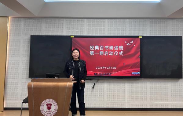 最后,馆长鲍晓悦阐述了同学们参与“经典百书研读”活动可得到的收获,鼓励同学们坚持完成研读过程,期待同学们在思维、阅读与写作方面的长足进步与成长。