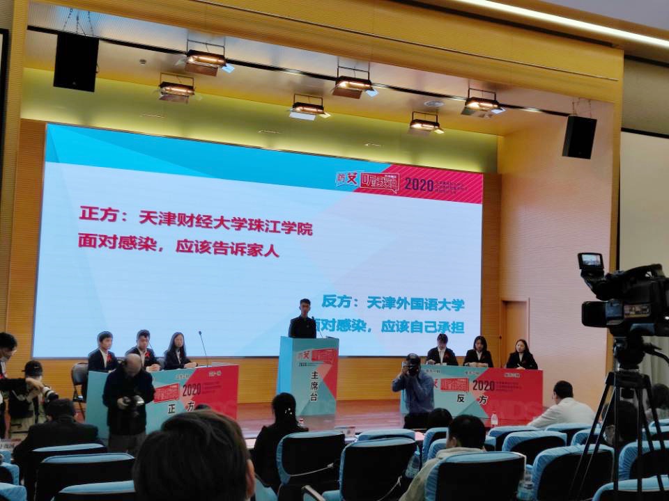 天津赛区的比赛共分八组,我院代表队与天津外国语大学代表队分在第四组,天津外国语大学持反方辩题为“面对感染,应该自己承担”。我院持正方观点是“面对感染,应该告诉家人”。通过激烈辩论后,根据各代表队辩手总体评分我院代表队以5:2的票数获胜,荣获天津赛区二等奖。按照各辩手得分情况,我院李沐洋同学、天津师范大学李可怡同学、天津理工大学汤谨源荣获天津赛区选拔赛“最佳辩手”荣誉称号,三位同学将代表天津赛区赴北京参加京津冀三地总决赛。