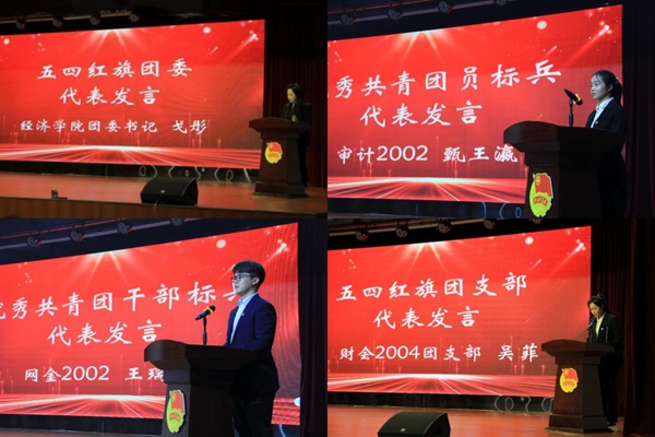 颁奖仪式结束后,经济学院团委书记戈彤代表五四红旗团委发言,以及三位同学依次代表优秀共青团员标兵、优秀共青团干部标兵以及五四红旗团支部发言。